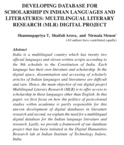 Developing Database for Scholarship in Indian Languages and Literatures: Multilingual Literary Research (MLR) Digital Project